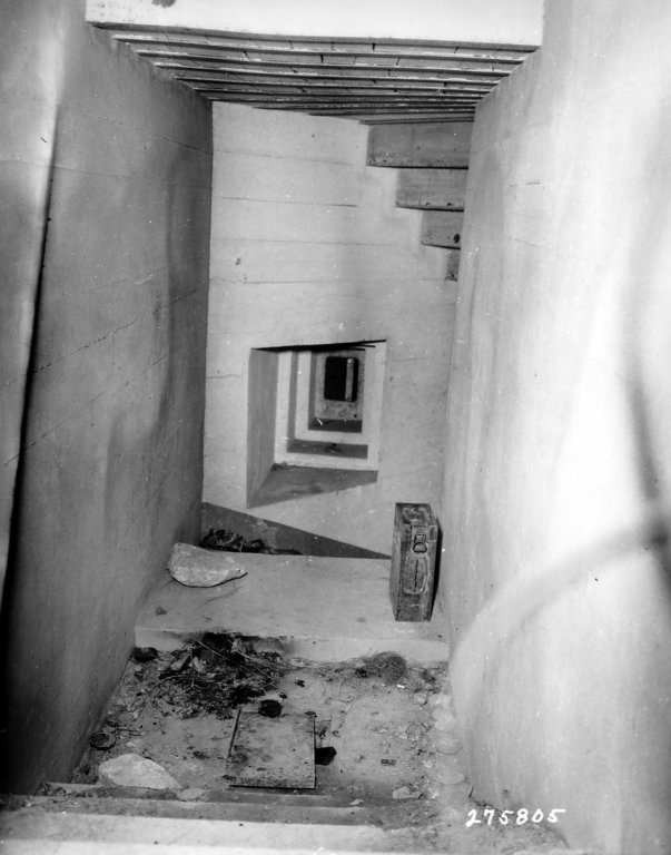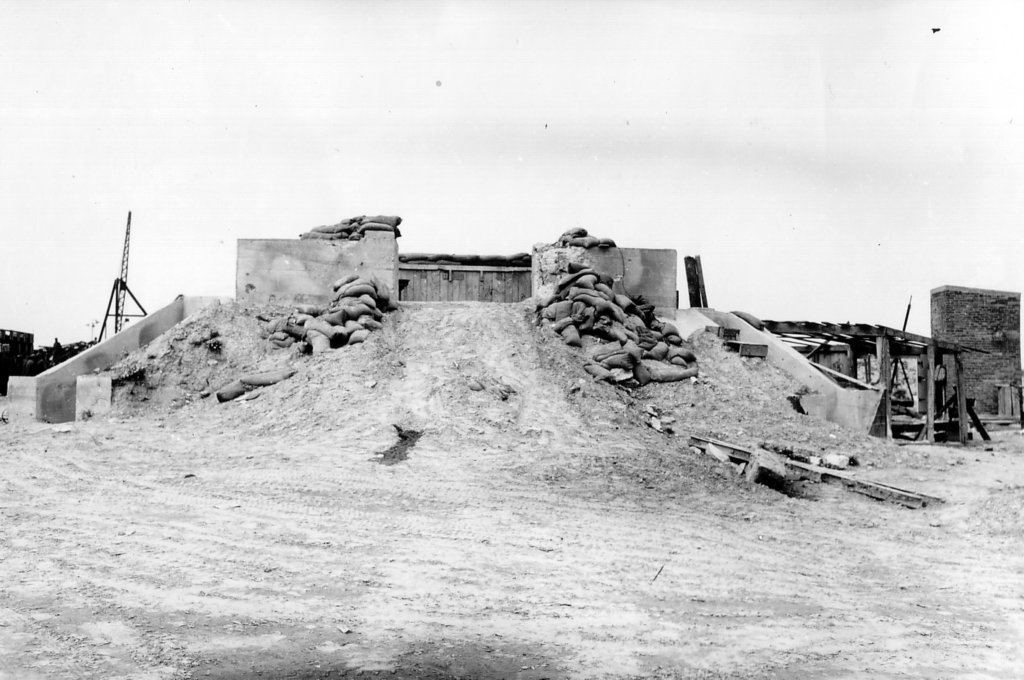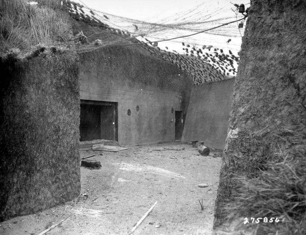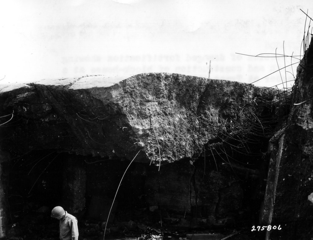 Este bunker foi ligeiramente protegido por um pequeno número de sacos de areia, ele pode ser visto em uma foto depois de ter sido dinamitado por Engenheiros dos EUA.