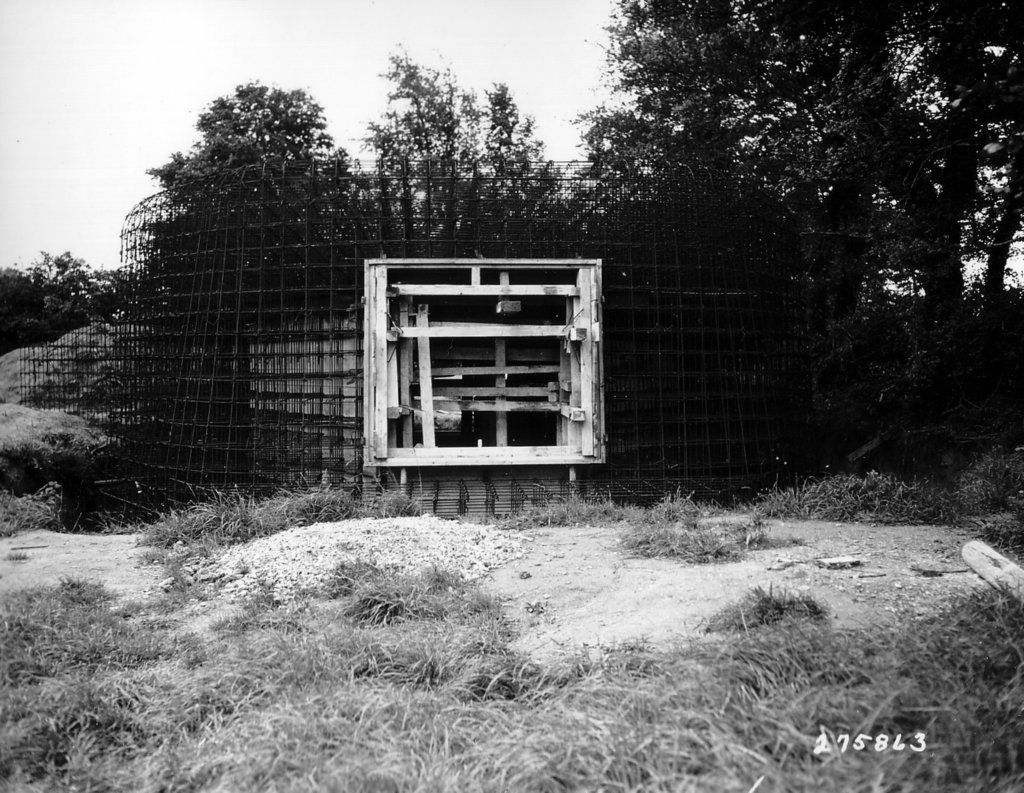 Este foi o último dos três bunkers a ser construído no Ozouville-Les Maresquiers, na área Querqueville sul-leste da estrada 118 D. Esta imagem mostra uma vantagem para as técnicas de construção, e o reforço de aço utilizado. O soldado também adiciona uma escala útil para a foto de que um lote do bunker quando concluído seria subterrâneo.